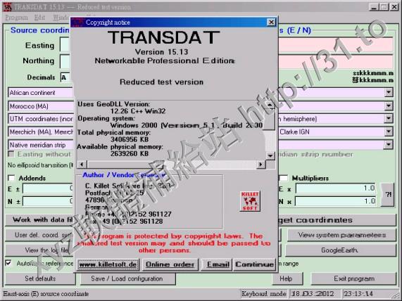 Killetsoft TRANSDAT v17.02 英文正式版(地理坐標轉換軟體)